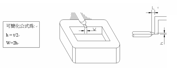 适用于大部塑料、各种侧边允许浇口痕迹的制品,开在制品的边缘或边缘顶面,又分标准入水、搭接入水和扇形入水,下图中t为产品壁厚,L一般为(0.8—1mm)